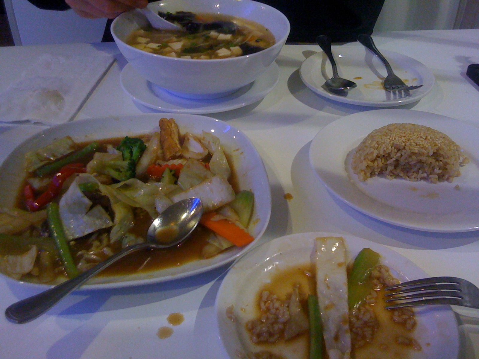 The husband is working in Pittsburgh this weekend so we had an opportunity to scout around for a place to eat dinner. Just by pure luck we drove past by the Loving Hut and after some parking lot wandering we found our way inside. The pictures I took are with my iPhone so pardon the quality.